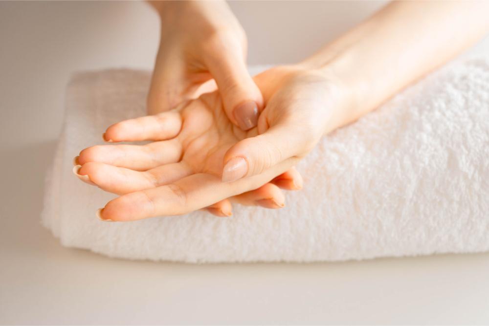 ハンドマッサージは、血行促進に効果的なケアです。冷えや酸素不足で爪が紫に見える場合も、手を温めながらマッサージすることで血流が改善し、爪の色ツヤが戻りやすくなります。