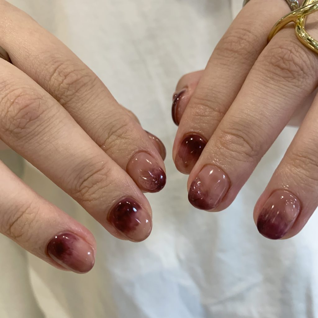 桃ネイルなども人気ですが秋っぽくボルドーカラーもいれたいちじくモチーフネイルにしました!秋カラーと秋っぽいマーブルがとても可愛くてフルーツなので水滴もプラスしました!