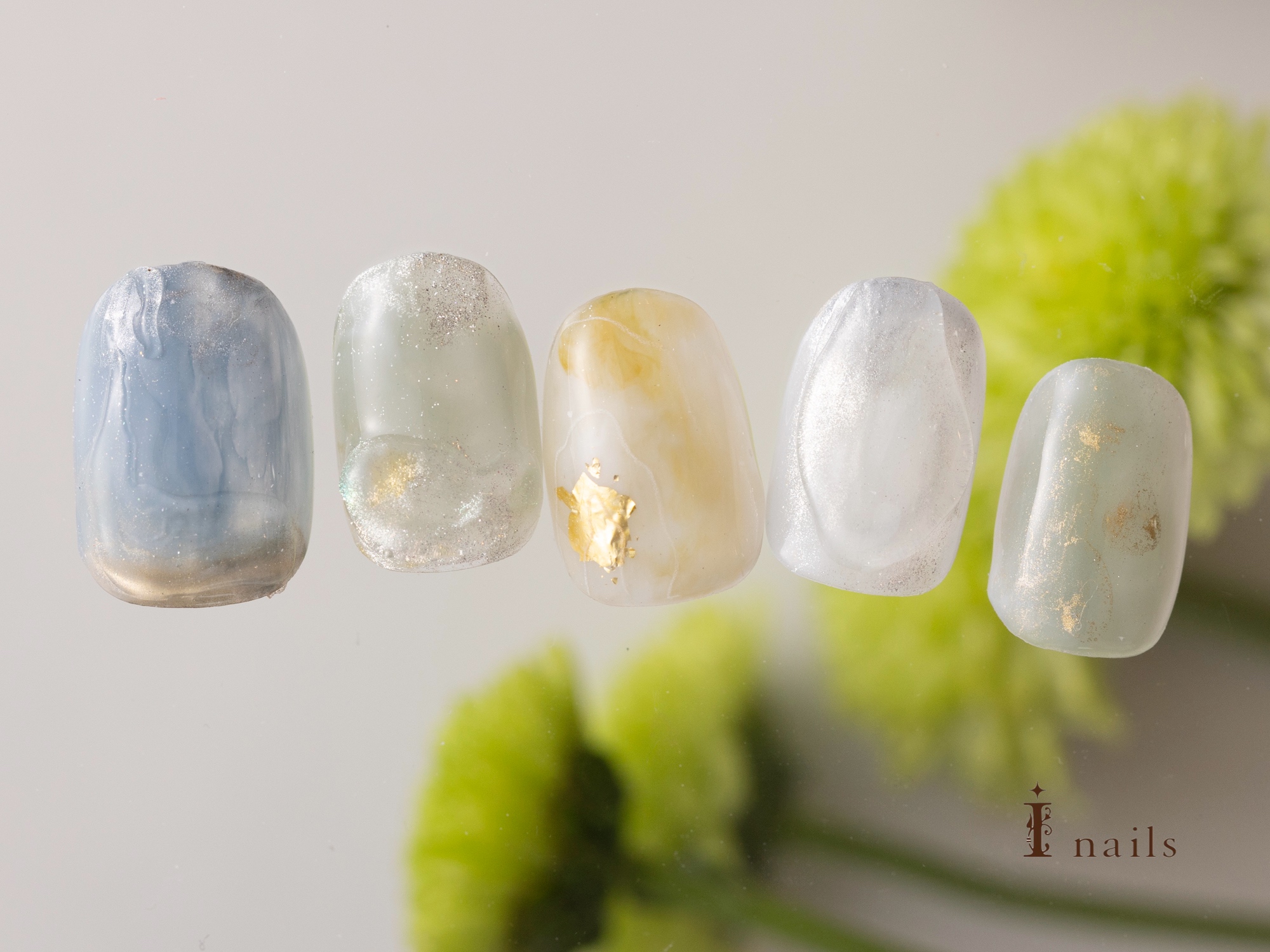 爽やかニュアンス【担当】城間 COLOR ホワイト ブルー イエロー グリーン ゴールド ARTTYPE タイダイ ニュアンス ミラー TASTE デコレーション 大人可愛い 上品 おしゃれ SCENE 夏ネイル オールシーズン デイリー PRICE ¥9001~¥11000 色んなアートが詰まったカラフルニュアンス