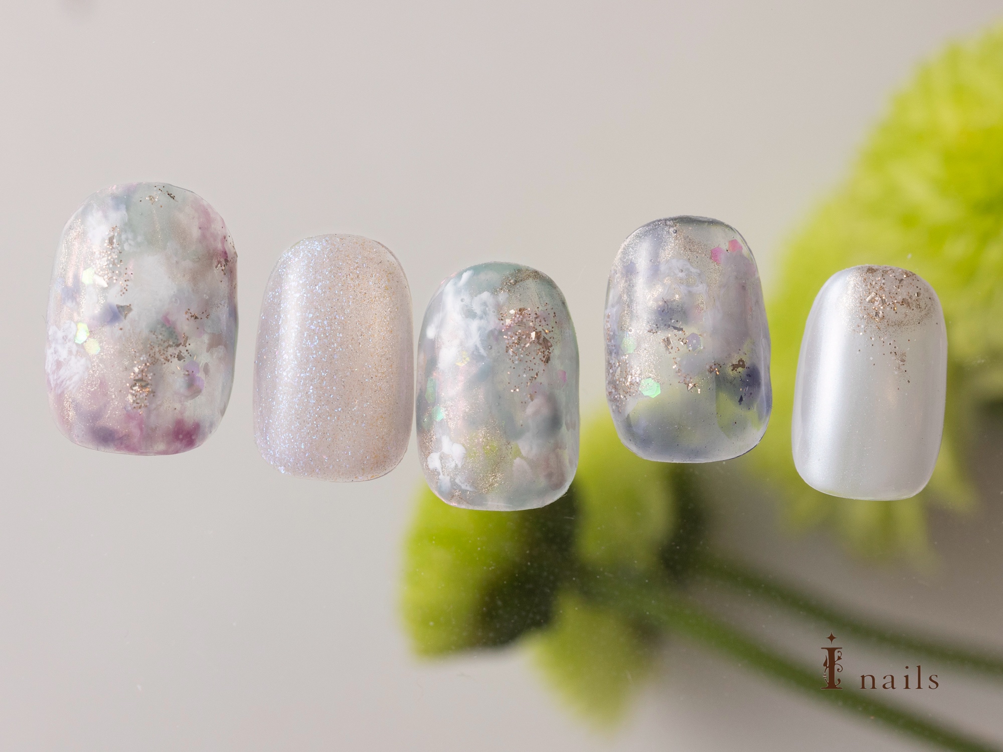 花柄風ニュアンス【担当】古庄 COLOR ブルー ピンク グリーン グレー くすみ系 ARTTYPE 花柄 ニュアンス ミラー TASTE 大人可愛い 上品 おしゃれ SCENE オールシーズン デイリー PRICE ¥9001~¥11000 奥行き感のある花柄ニュアンス ¥9480