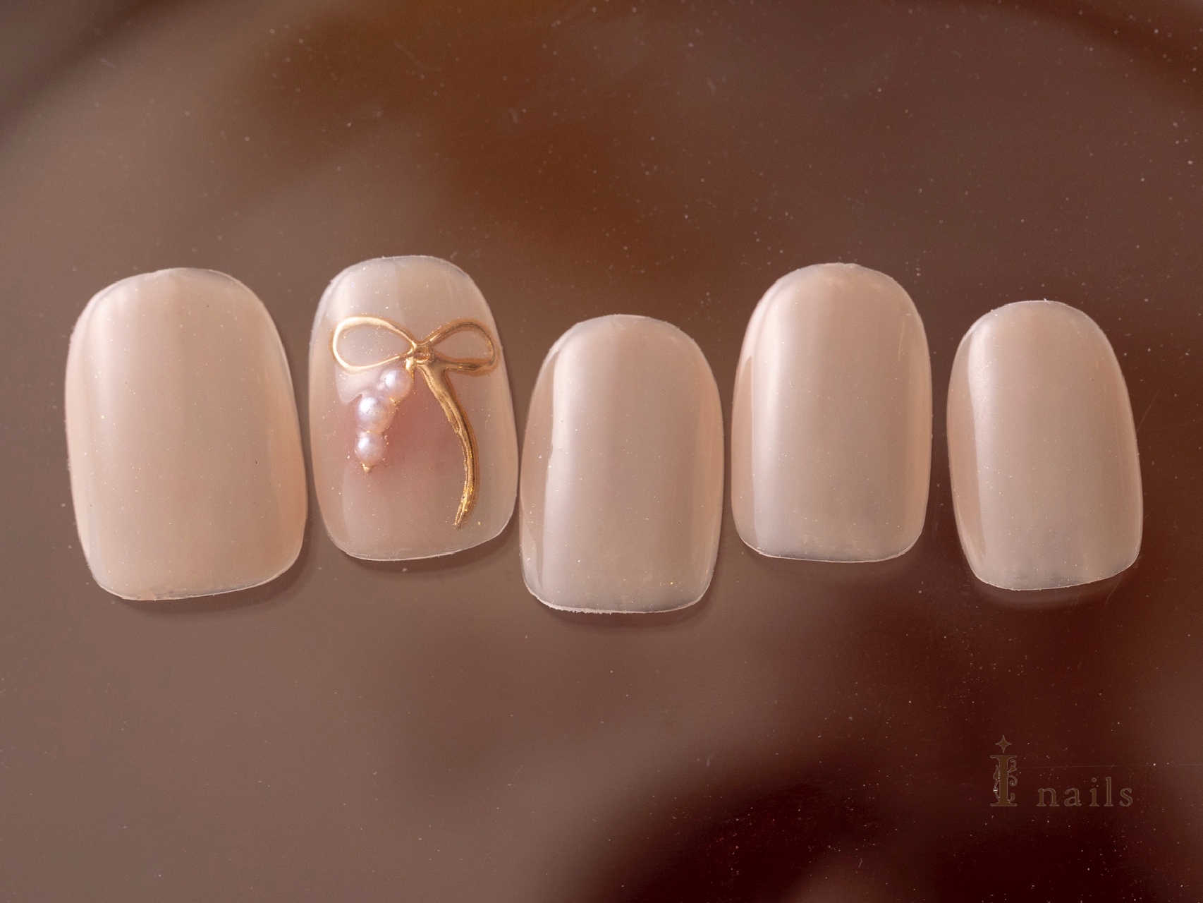リボンネイル【担当】泉 COLOR ピンク ゴールド ベージュ くすみ系 ARTTYPE ワンカラー パール ミラー TASTE シンプル ラブリー ガーリー SCENE オフィス 秋ネイル PRICE ¥7001~¥9000 チークとリボンネイル¥7480