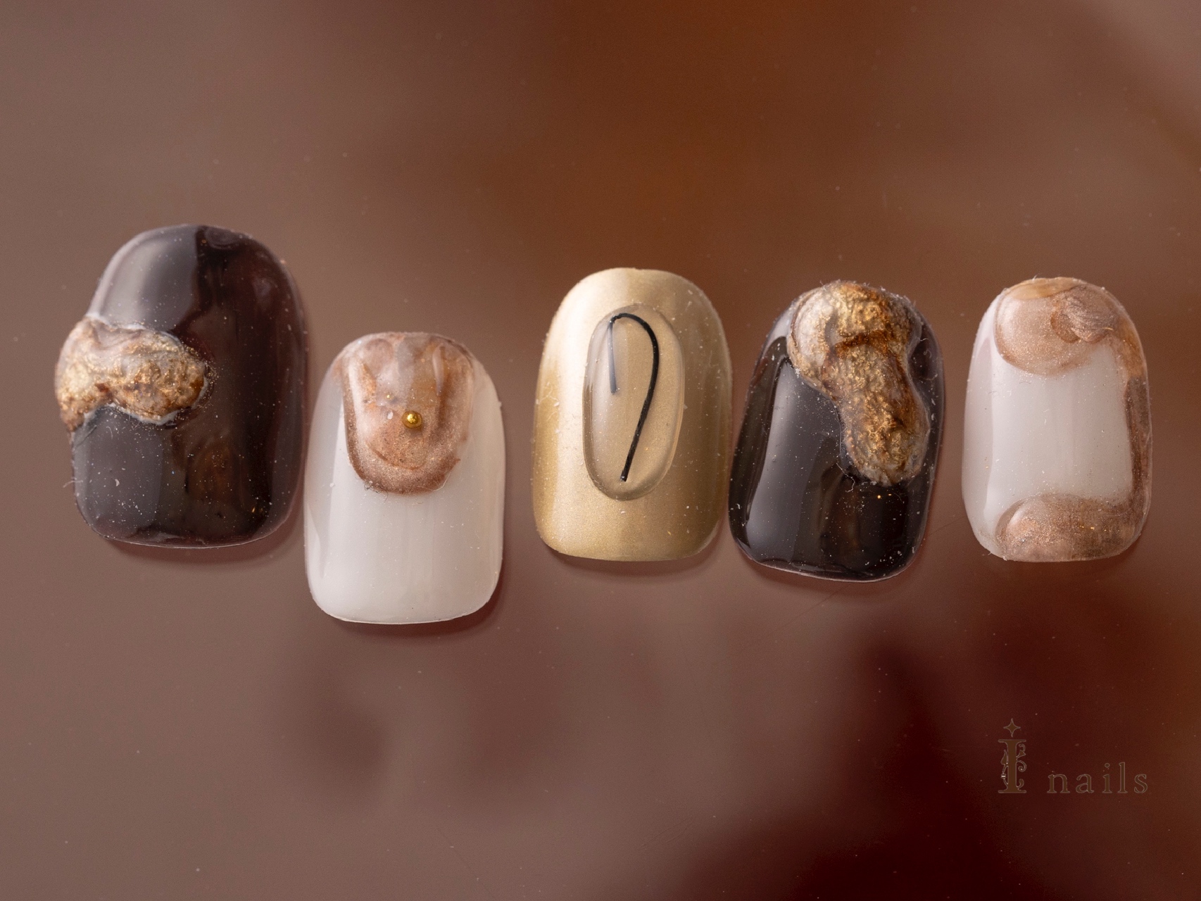 ぷっくりネイル【担当】酒主 COLOR ホワイト ブラック ゴールド グレー くすみ系 ARTTYPE ワンカラー ニュアンス ミラー 凸凹 ぷくぷく TASTE モード 個性派 SCENE 秋ネイル 冬ネイル PRICE ¥9001~¥11000 秋色ぷっくりネイル¥9480