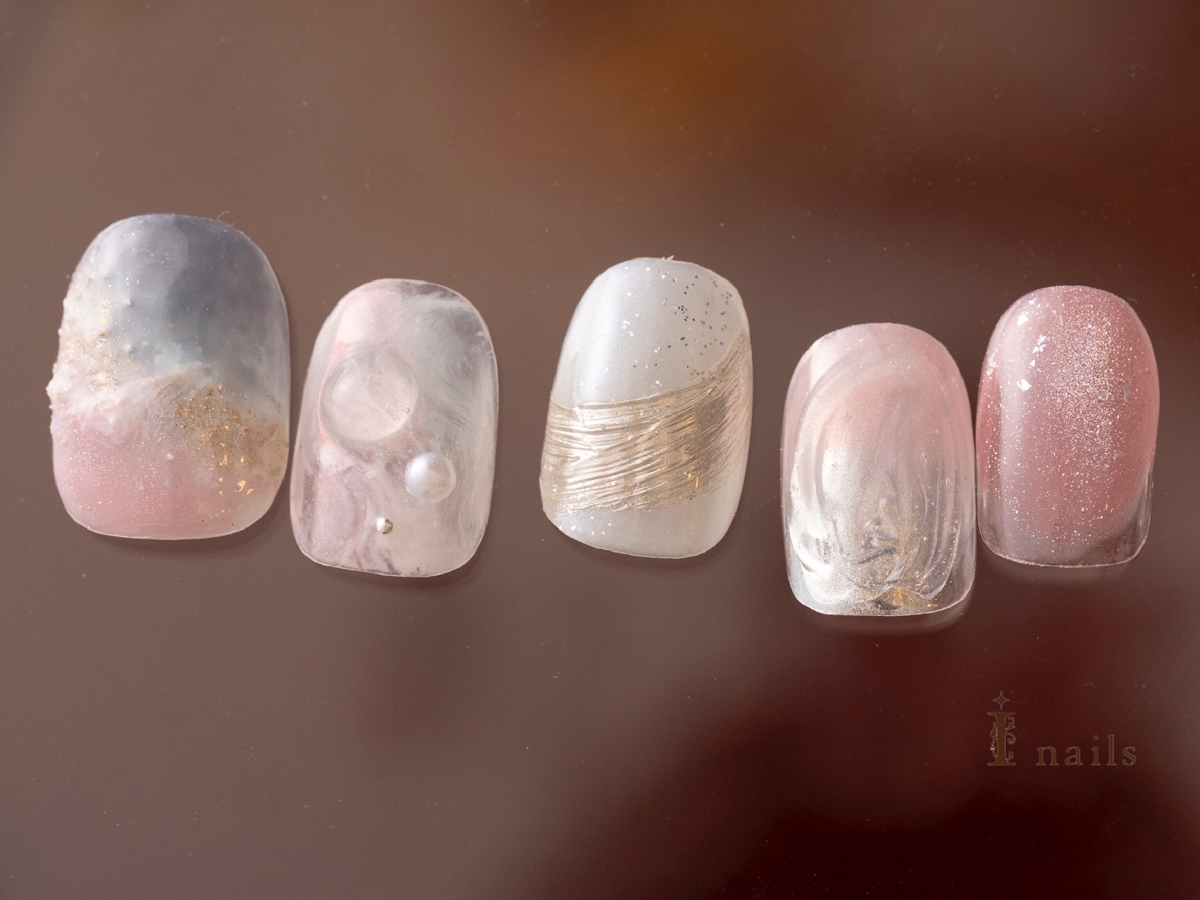 淡空【担当】泉 COLOR ホワイト ブルー ピンク ゴールド オーロラ ARTTYPE マーブル タイダイ ミラー 凸凹 ぷくぷく TASTE デコレーション ラブリー 大人可愛い SCENE オールシーズン デイリー PRICE ¥9001~¥11000 ピンクの淡色空¥9480