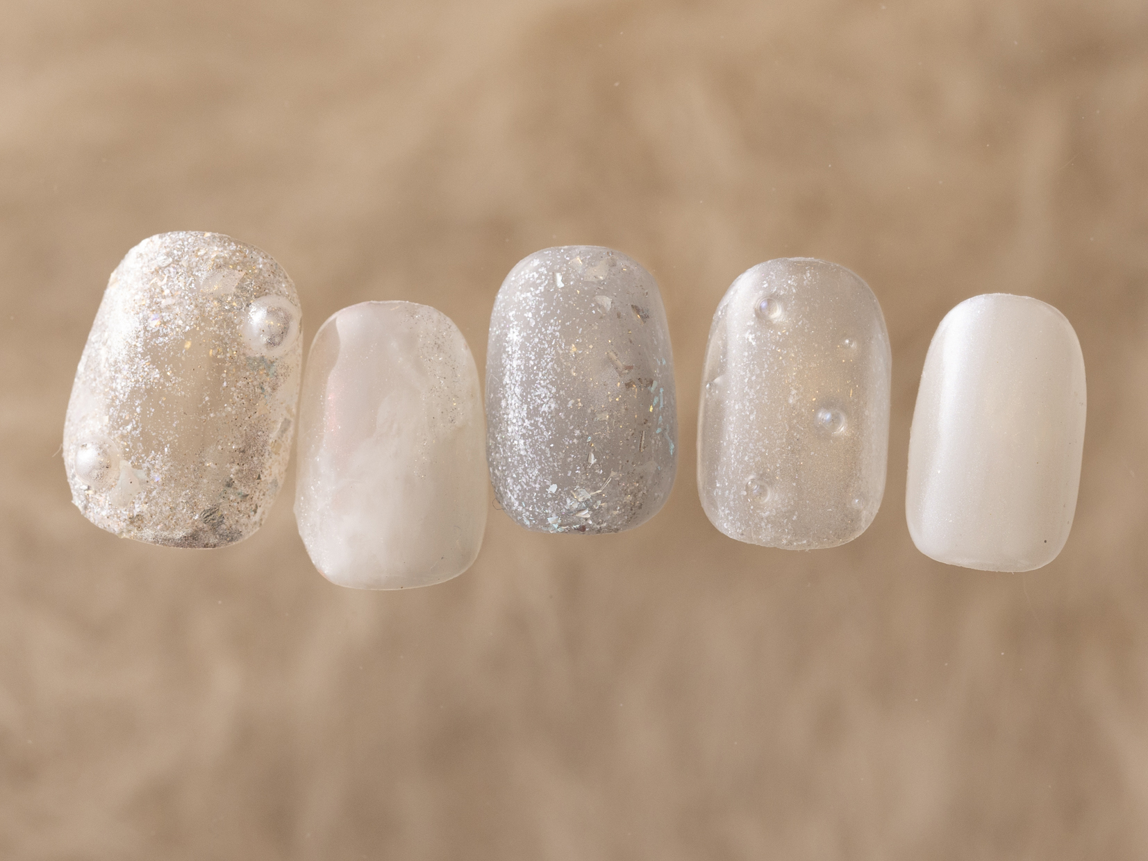 ホワイトスノー【担当】吉宮 COLOR ホワイト シルバー シアー くすみ系 ARTTYPE ラメ パール ニュアンス ミラー 凸凹 ぷくぷく TASTE 大人可愛い 上品 おしゃれ SCENE 冬ネイル PRICE ¥9001~¥11000 キラキラの雪を表現¥9480