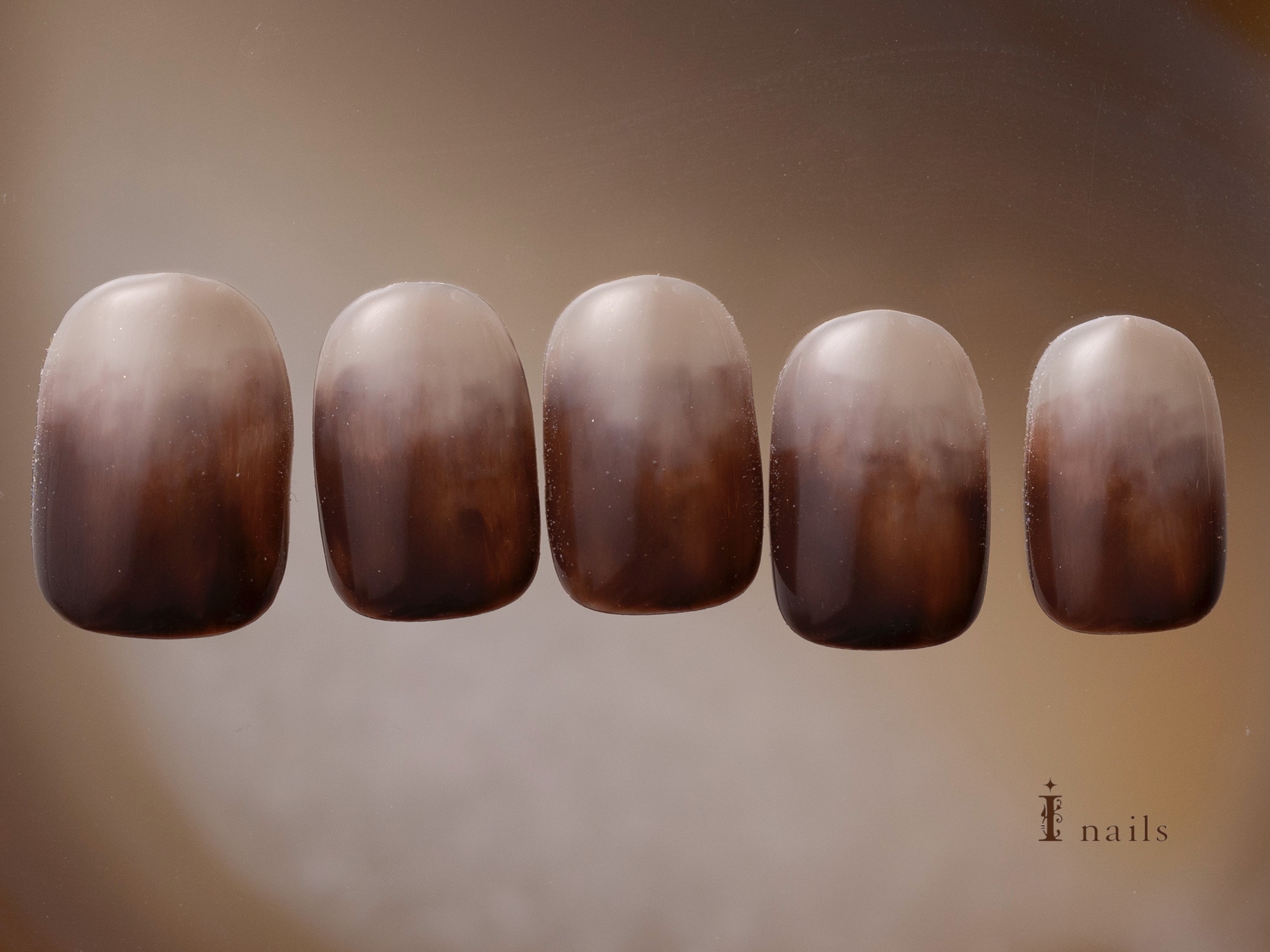 もやもやグラデニュアンス【担当】酒主 COLOR ホワイト ブラウン ベージュ くすみ系 ARTTYPE ニュアンス TASTE シンプル おしゃれ SCENE オールシーズン デイリー PRICE ¥7001~¥9000 カフェラテのようなニュアンスネイル¥8000