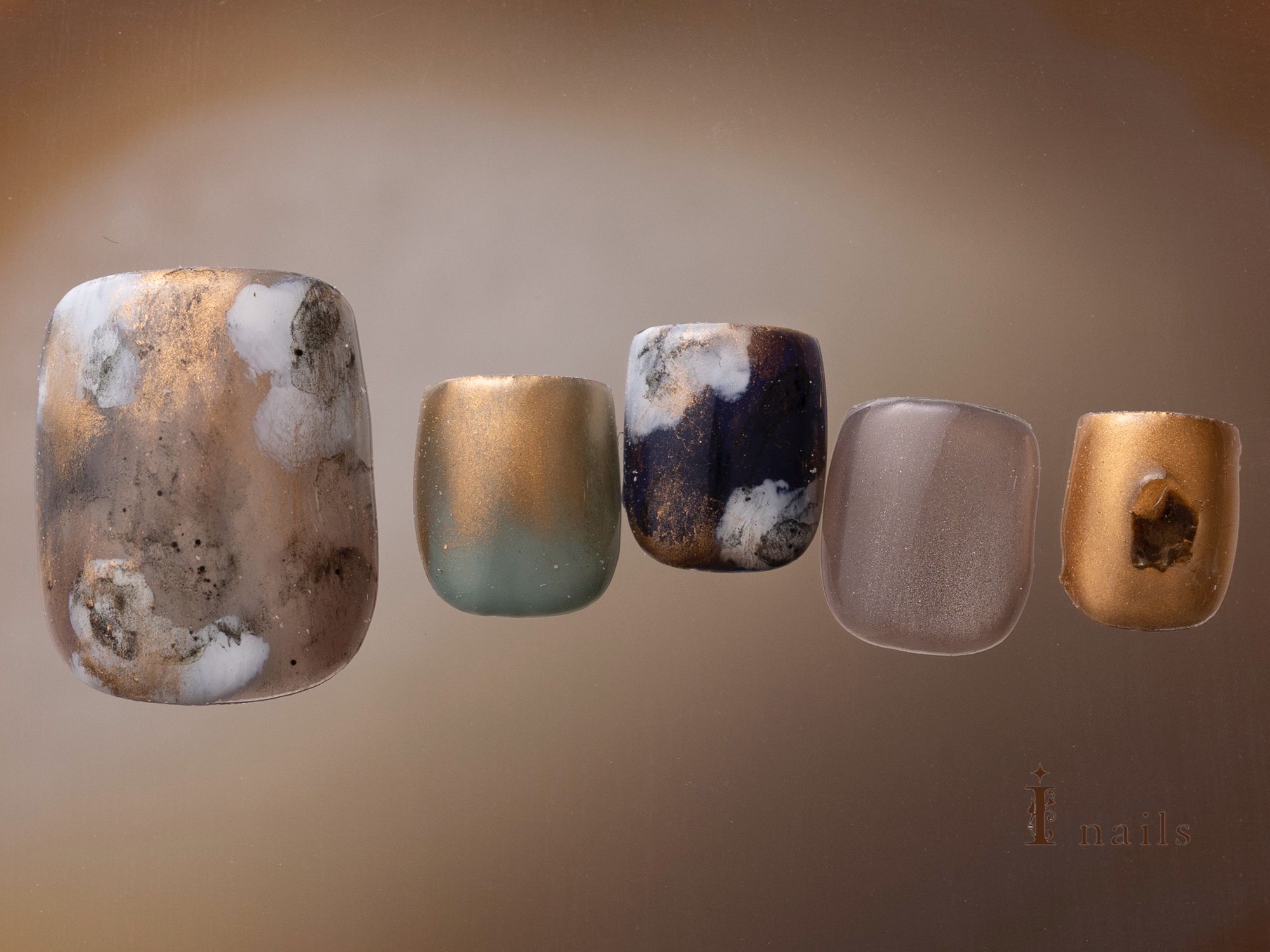 レトロフラワーフット【担当】吉宮 COLOR ホワイト ブルー グリーン ゴールド ベージュ くすみ系 ARTTYPE ワンカラー 花柄 ニュアンス ミラー マグネット TASTE モード 大人可愛い おしゃれ SCENE オールシーズン デイリー PRICE ¥9001~¥11000 ニュアンスフラワーネイル¥9480