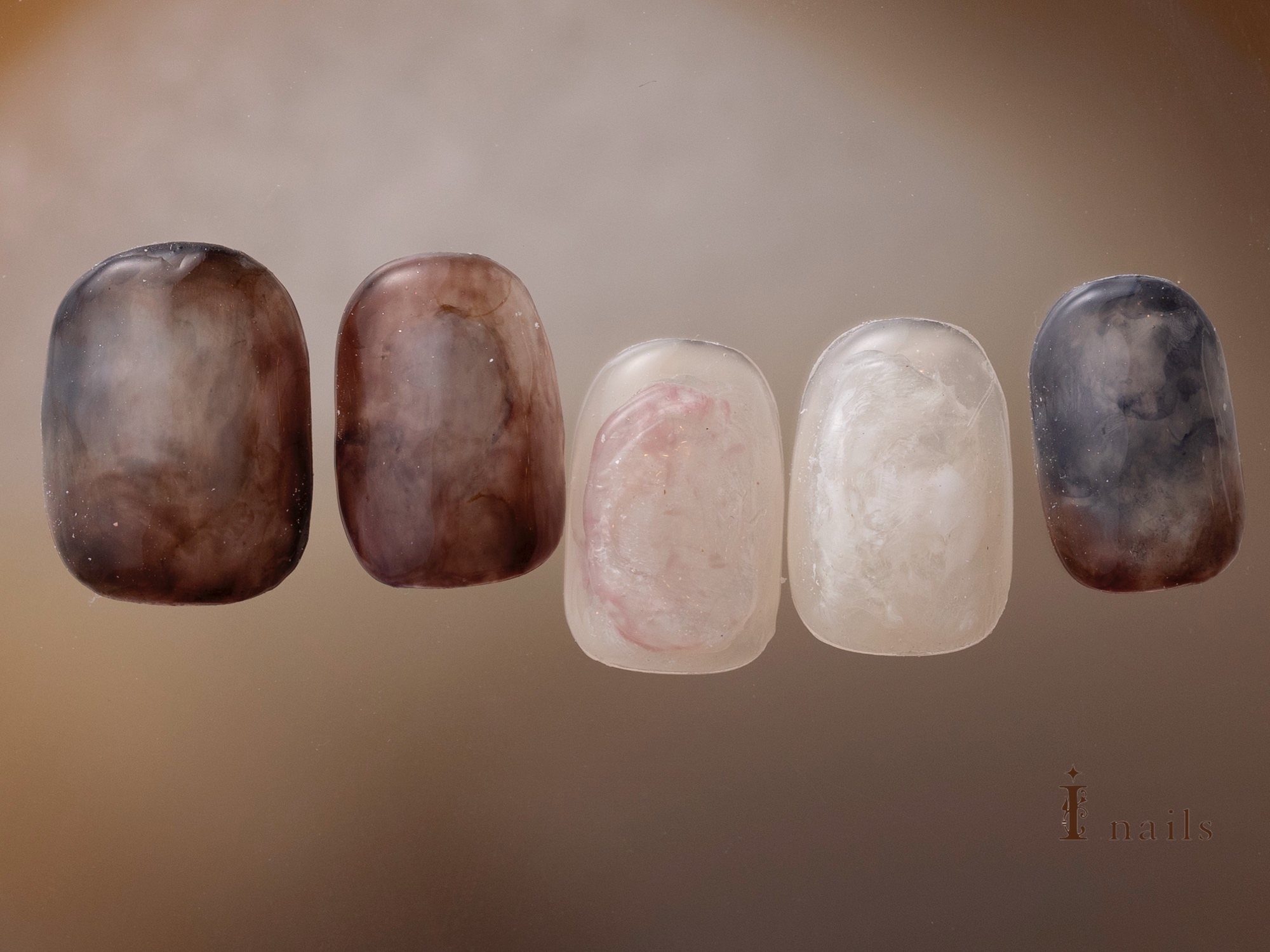 ブラウンニュアンス【担当】酒主 COLOR ホワイト ブルー ピンク ブラウン くすみ系 ARTTYPE タイダイ ニュアンス TASTE 上品 おしゃれ SCENE オールシーズン デイリー PRICE ¥9001~¥11000 ブラウンの奥行きもやもや¥9480