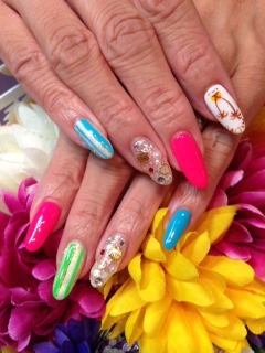 ワンポイントネイル 2014/08/11 こんにちは! 台風も無事去ってくれてよかったです。 お客様持込デザインのご紹介です。 大好きなリキュールをかいてみました。 そしてラメベースにストーンをちりばめて☆ こんなネイルでビアガーデンやバーにいったら目立つこと間違いなし!! 一味違ったネイルもためしてみませんか?