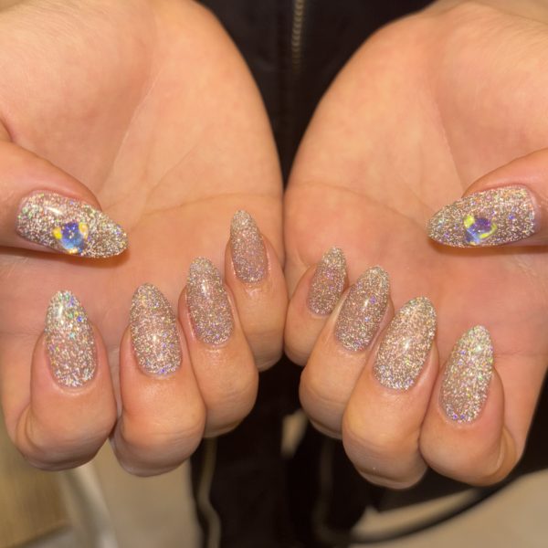 フラッシュたいて撮るとこんな感じになるのが特徴のネイルです!