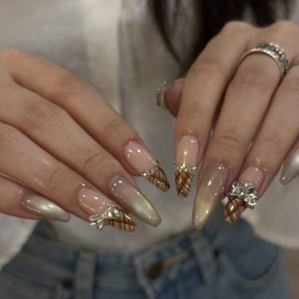 秋っぽくブラウンカラーのチェックにマグネットでチュルチュル感を出しました♪