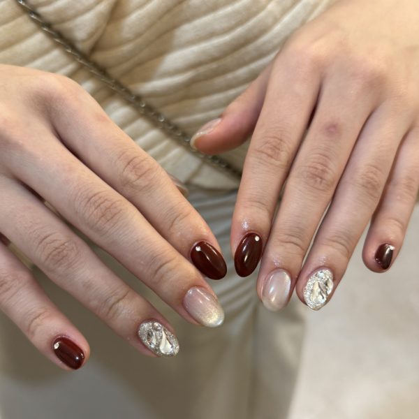 これからの季節にぴったりなボルドーカラーに埋めつくしでちゅるん感を出しました♪