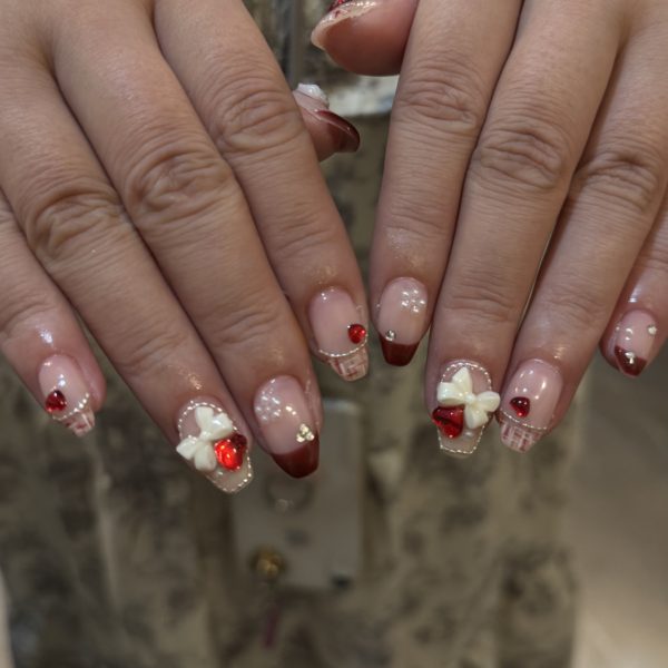 クリスマスにぴったりなツイードに赤フレンチをしました♪