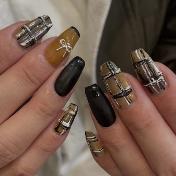 いつもとは違った雰囲気のチェックネイル(^o^)