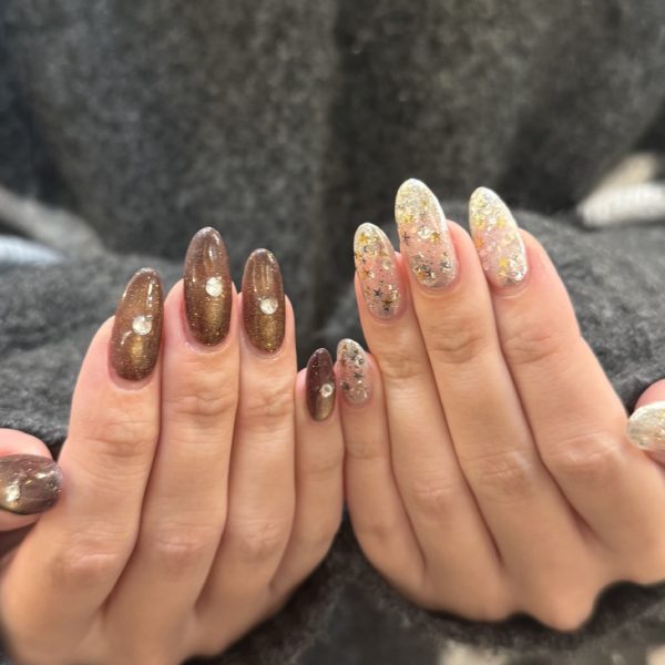 冬っぽくちぐはぐネイルに変えてもらいました(*^^*)
