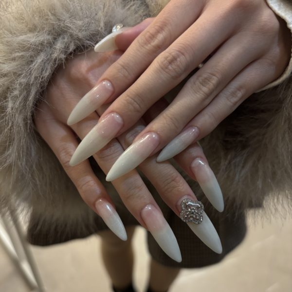 チップでの長さだしをしたのち白ラメでグラデーションに