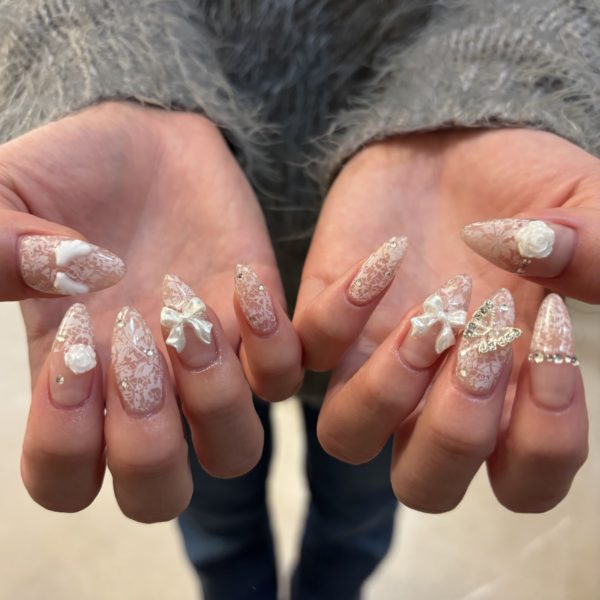 今回はレースのガーリーなネイルをご紹介致します☆