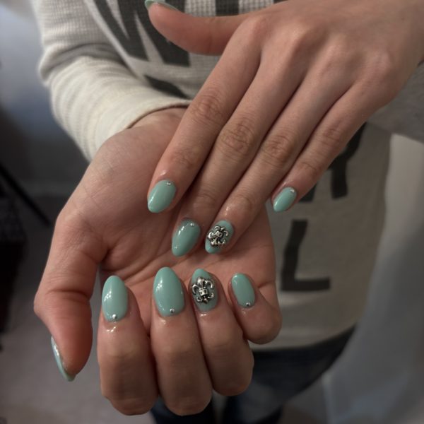 ターコイズブルーにクロムのパーツをつけてカッコよく可愛いデザインになります♪