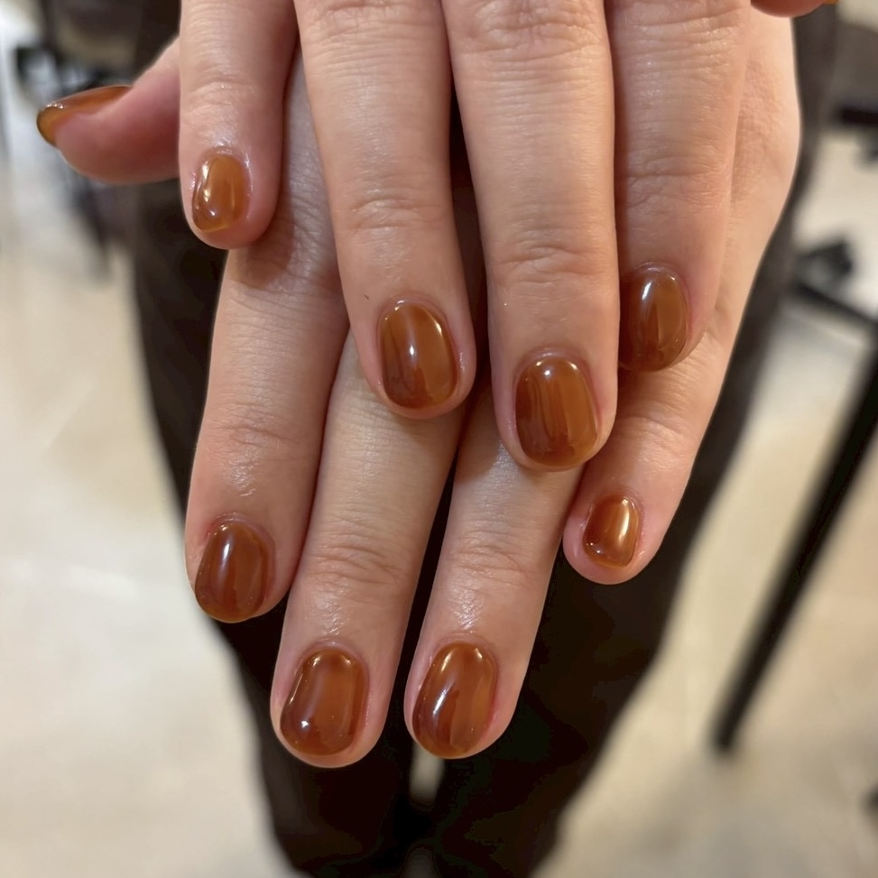 オレンジブラウンワンカラー【担当】舘下 COLOR ブラウン オレンジ ARTTYPE ワンカラー TASTE シンプル 大人可愛い 上品 SCENE オフィス 秋ネイル オールシーズン デイリー PRICE ¥5000~¥7000 こっくり深めなブラウンカラー☆この時期にぴったり!!6000円