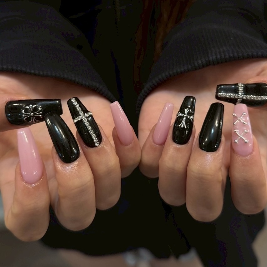 ロングÝ2k【担当】北 COLOR ブラック ピンク ARTTYPE ワンカラー ラインストーン パーツ TASTE シンプル クール 個性派 SCENE オールシーズン デイリー PRICE ¥7001~¥9000 チェーンで作る十字可架きっらきら☆ロング可愛いです♡~8980円