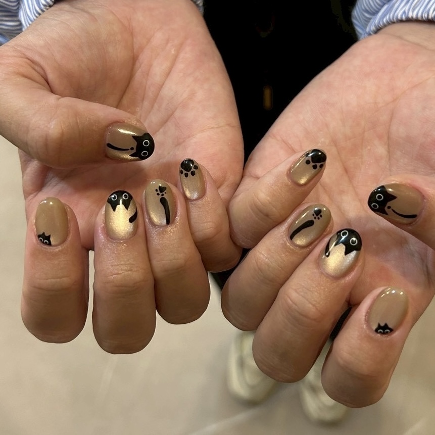 マグネット猫ネイル【担当】本山 COLOR ホワイト ブラック ベージュ ARTTYPE ワンカラー アニマル マグネット TASTE シンプル ゴージャス ポップ デコレーション 個性派 SCENE オールシーズン PRICE ¥9001~¥11000 マグネットベースにひょっこり猫ちゃん♡~11000円