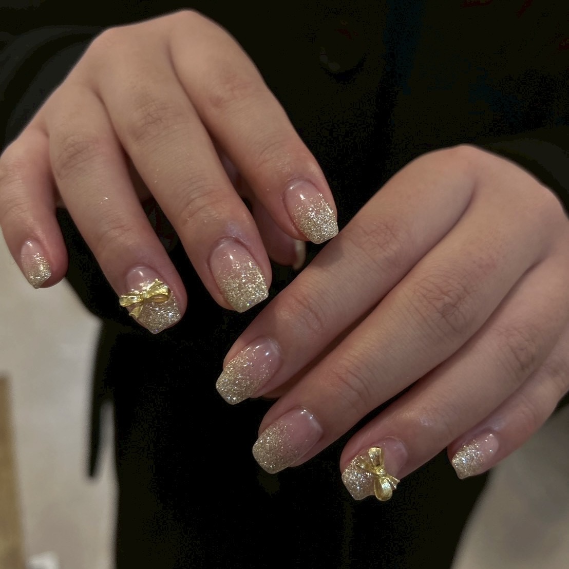 ラメグラリボン【担当】本山 COLOR ピンク ゴールド ARTTYPE ワンカラー グラデ ラメ パーツ TASTE シンプル スウィート エレガント ゴージャス 大人可愛い 上品 SCENE パーティー デート クリスマス 冬ネイル 夏ネイル オールシーズン デイリー PRICE ¥5000~¥7000 ラメでキラキラ☆らめ調合できます!!6000円~