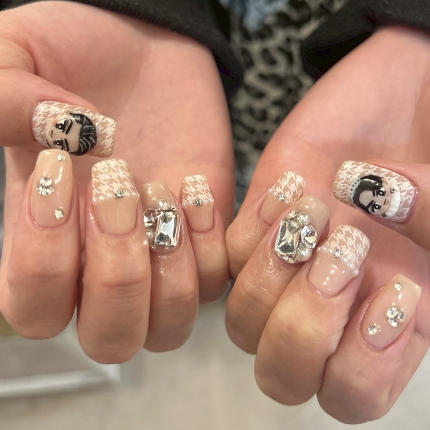 推し活千鳥柄ネイル【担当】本山 COLOR ホワイト ベージュ ARTTYPE ワンカラー フレンチ ストーン パーツ TASTE ゴージャス ポップ デコレーション 個性派 SCENE パーティー 祭り オールシーズン デイリー PRICE ¥9001~¥11000 推しのパーツ作れます!!9980円~ パーツ別途彫金
