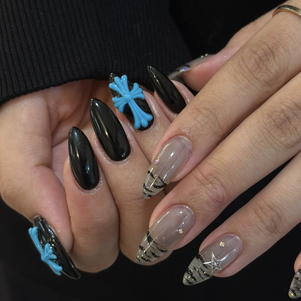 でかクロムネイル★【担当】北 COLOR ブラック ブルー シルバー シアー ARTTYPE ワンカラー ラインストーン TASTE シンプル クール SCENE オールシーズン デイリー PRICE ¥9001~¥11000 今流行りのでかクロム!!!ちぐはぐ可愛い♪9980円