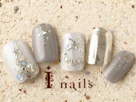 上品クリスマスツリー COLOR ホワイト シルバー ベージュ グレー ARTTYPE ワンカラー ストーン ラメ パール ホログラム TASTE スウィート エレガント ゴージャス SCENE パーティー クリスマス 冬ネイル PRICE ¥9001~¥11000 ¥9480