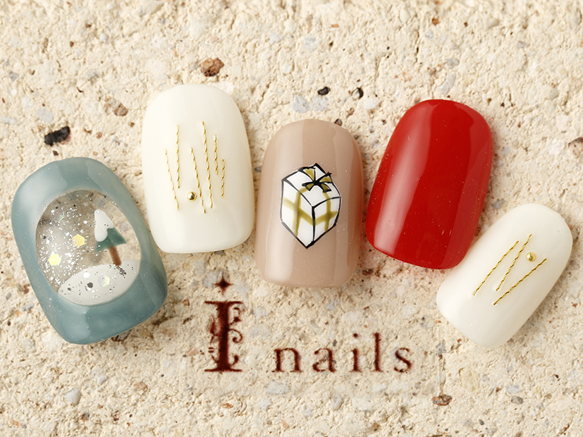 スノードームクリスマス COLOR ホワイト ブルー ゴールド オレンジ ベージュ カラフル ARTTYPE ワンカラー ラメ ペイント ホログラム TASTE エレガント ガーリー SCENE パーティー クリスマス 冬ネイル PRICE ¥9001~¥11000 ¥9480
