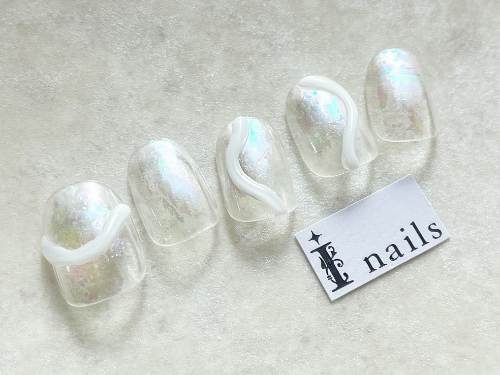 オーロラホワイトクリアネイル【担当】伊藤 COLOR ホワイト クリアー オーロラ シアー くすみ系 ARTTYPE ワンカラー ラメ ニュアンス フィルム ホイル 凸凹 ぷくぷく TASTE シンプル エレガント ブライダル 個性派 大人可愛い 上品 おしゃれ SCENE 誕生日 パーティー 結婚式 オフィス キャンパス デート 春ネイル 夏ネイル オールシーズン デイリー PRICE ¥5000~¥7000 【Clear】新規¥6500 再来¥7000[池袋/パラジェル]
