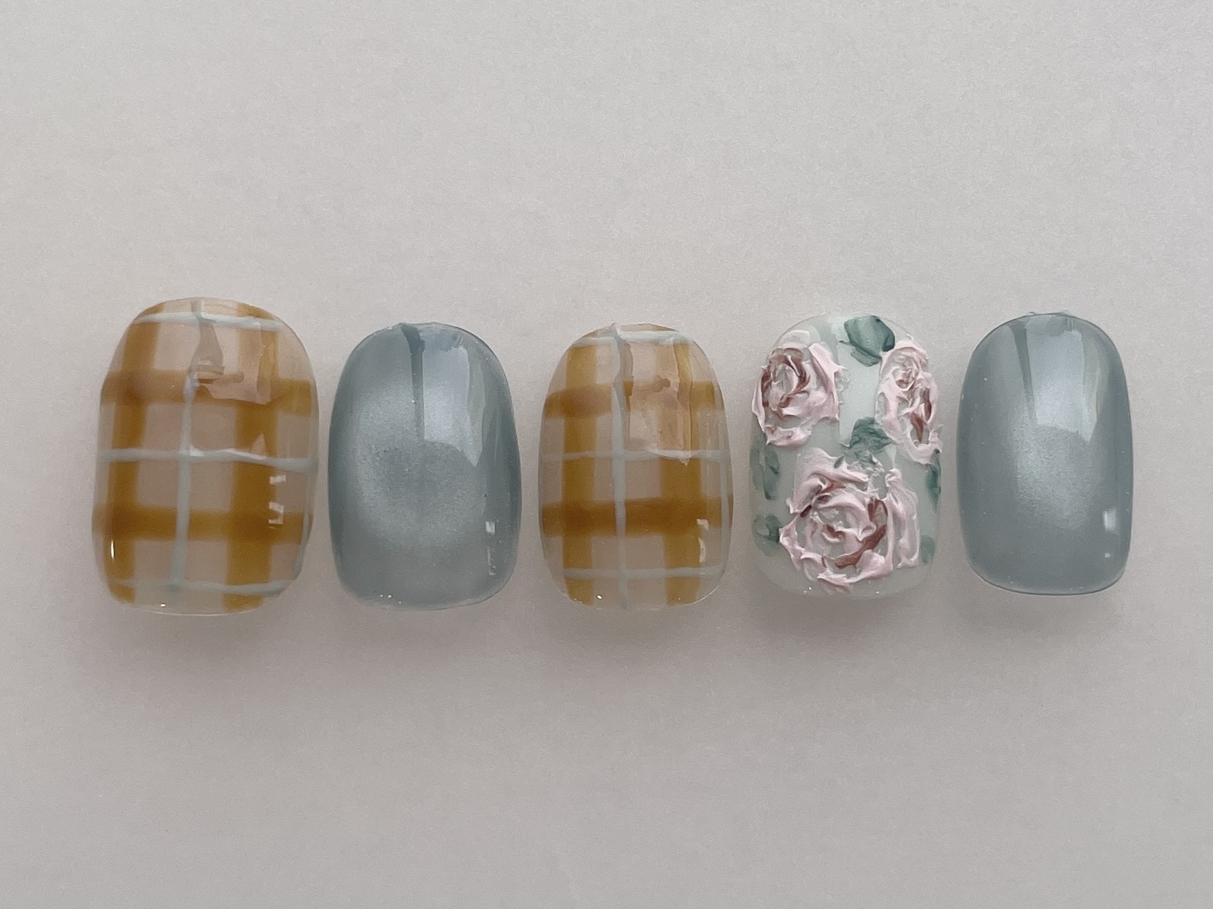ishikawa指名限定デザイン COLOR ブルー ブラウン グリーン くすみ系 ARTTYPE ペイント チェック 花柄 マグネット TASTE ガーリー 個性派 大人可愛い おしゃれ SCENE 秋ネイル 冬ネイル オールシーズン デイリー PRICE ¥7001~¥9000 【ishikawa指名限定コース】¥8000~[池袋/パラジェル]