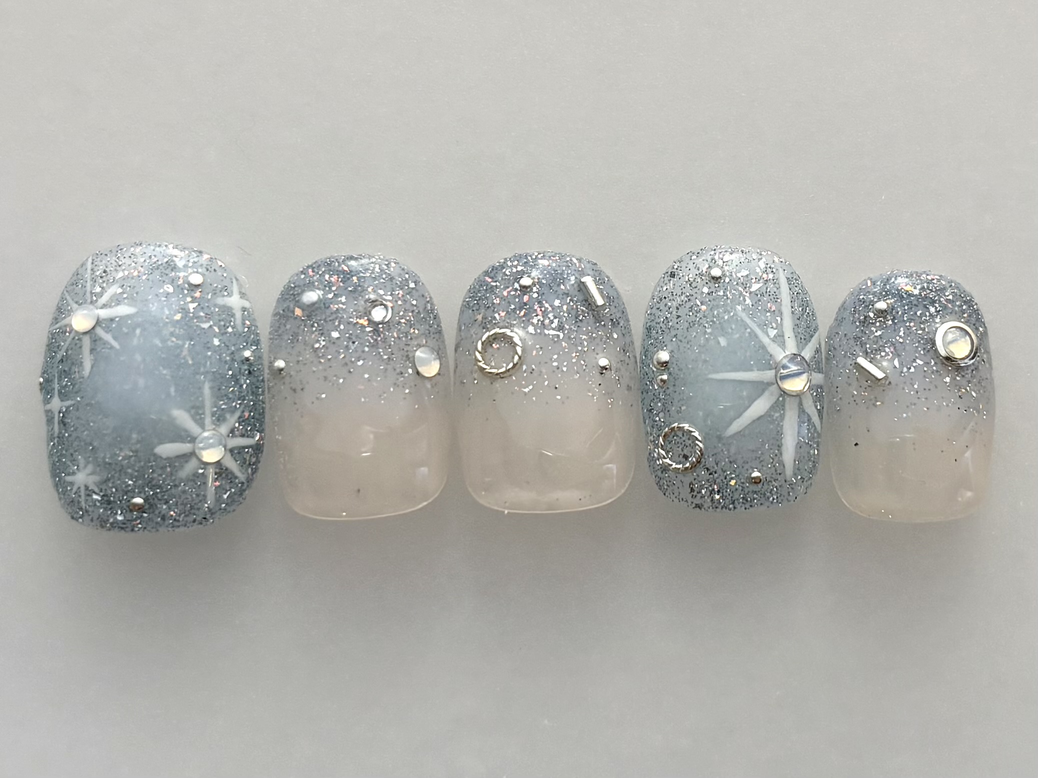 Crystal collection1 Kokoha COLOR ホワイト ブルー シルバー ARTTYPE グラデ ラメ ビジュー パーツ TASTE クール エレガント ポップ デコレーション 個性派 SCENE お正月 成人式 冬ネイル デイリー PRICE ¥9001~¥11000 【Crystal collection】¥9000[池袋/パラジェル]