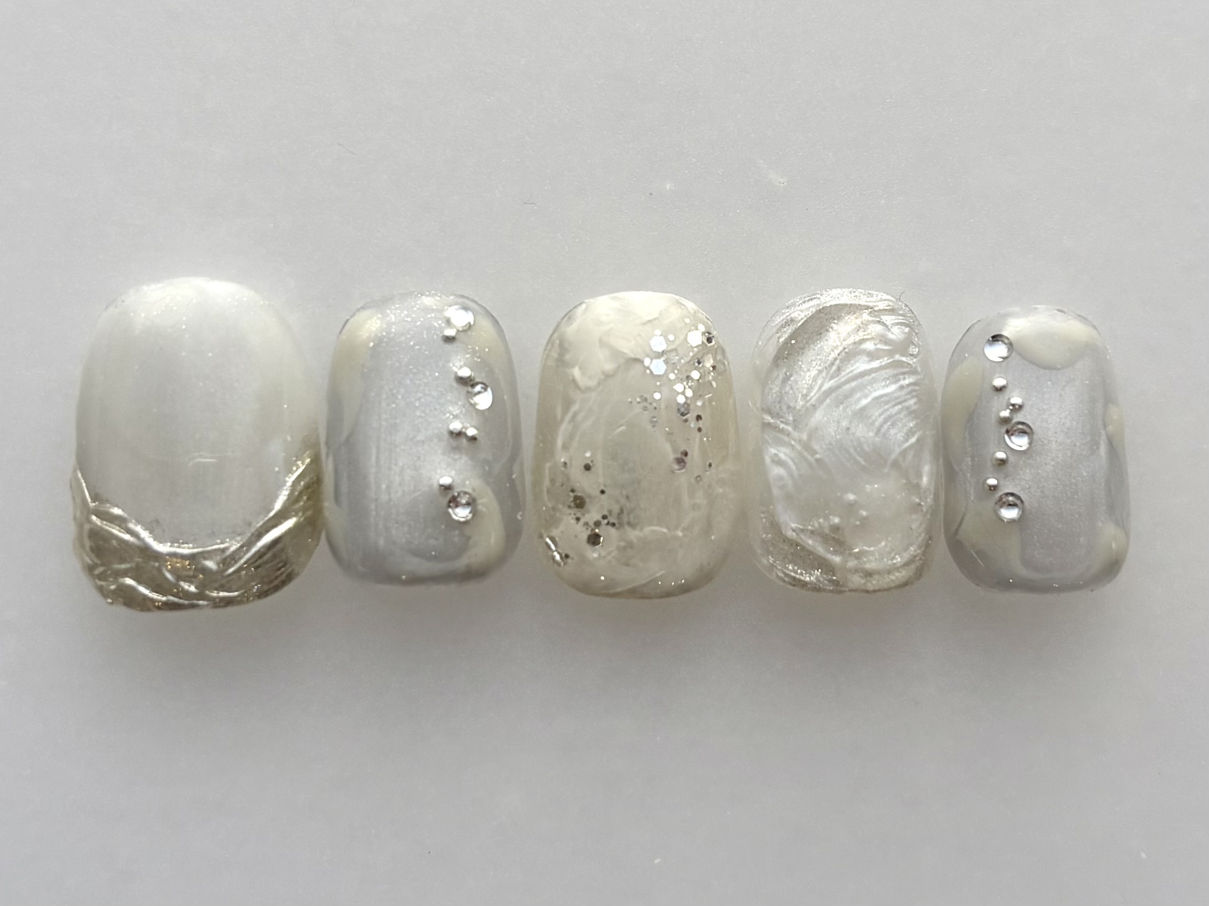 Crystal collection2 Natsumi.t COLOR ホワイト シルバー グレージュ くすみ系 ARTTYPE ラメ ミラー マグネット パーツ ぷくぷく SCENE オフィス お正月 成人式 冬ネイル デイリー PRICE ¥9001~¥11000 【Crystal collection】¥9000[池袋/パラジェル]