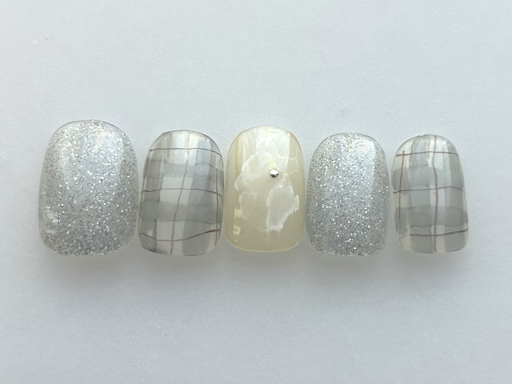 ブルーチェックフラッシュ Natsumi.t COLOR ブルー ベージュ ARTTYPE ラメ インクアート パーツ TASTE シンプル SCENE オールシーズン デイリー PRICE ¥7001~¥9000 【OfficeCasual】¥8000[池袋パラジェル]