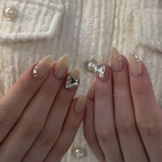 ワンホンビジューネイル【担当】松井 COLOR ホワイト ベージュ クリアー シアー ARTTYPE ワンカラー ストーン ラインストーン ビジュー パーツ TASTE シンプル エレガント デコレーション ガーリー 大人可愛い 上品 おしゃれ SCENE 誕生日 パーティー 結婚式 オフィス デート バレンタイン クリスマス 冬ネイル デイリー PRICE ¥5000~¥7000