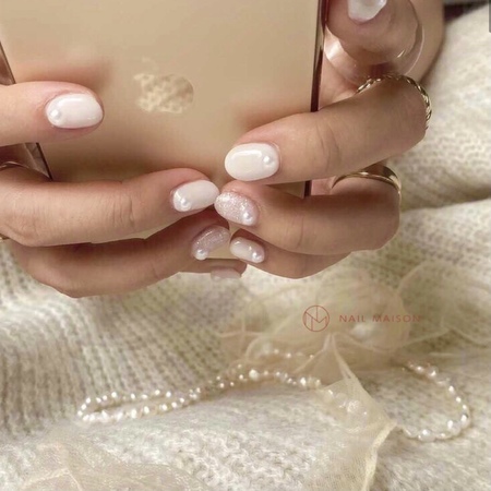 @moepiii_t_様ネイル♪ COLOR ホワイト シアー ARTTYPE ワンカラー ラメ パール TASTE シンプル エレガント 上品 SCENE パーティー 結婚式 オフィス キャンパス デート バレンタイン 卒業式 クリスマス 春ネイル デイリー PRICE ¥5000~¥7000