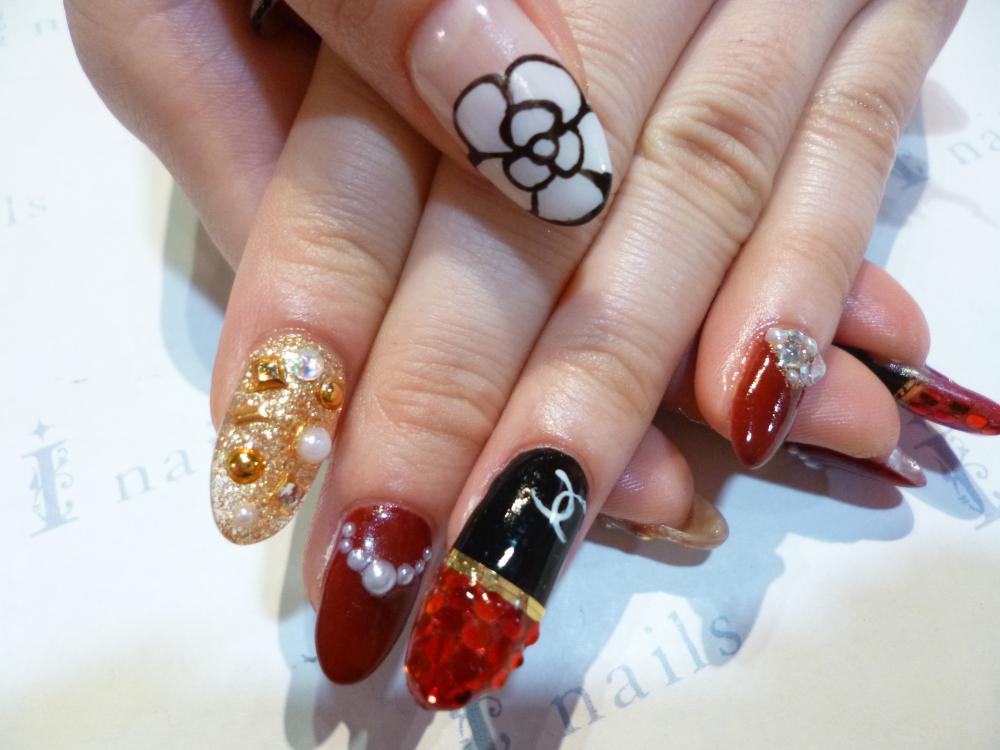 ゴージャスリップネイル COLOR ホワイト ブラック レッド ゴールド ARTTYPE ワンカラー 変形フレンチ ストーン ラメ スタッツ ペイント パール TASTE ゴージャス デコレーション SCENE 成人式 PRICE ¥9001~¥11000