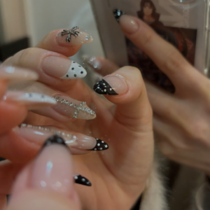 ドットフレンチのクロムパーツのモノトーンネイル♪