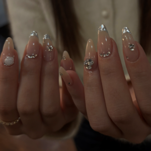 ガラスフレンチとキラキラストーンの冬ネイル♪