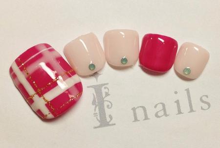 FOOT ガーリーチェック COLOR ホワイト ピンク ベージュ フット ARTTYPE ワンカラー ストーン チェック TASTE スウィート ラブリー ガーリー SCENE 秋ネイル PRICE ¥7001~¥9000