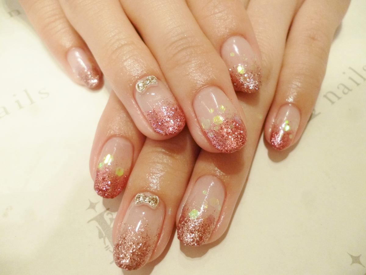 ラメグラ リボンパーツ 2014/07/27 ピンクのラメグラにリボンパーツはやっぱり可愛いですね(*^_^*) 境目にオーロラホロものせてキラキラです! ・~・~・~・~・~・~・~・~・~・~・ 所要時間:1.5時間 【オフあり】 価格:リボンパーツ 1つ 324円 Nailist:酒井
