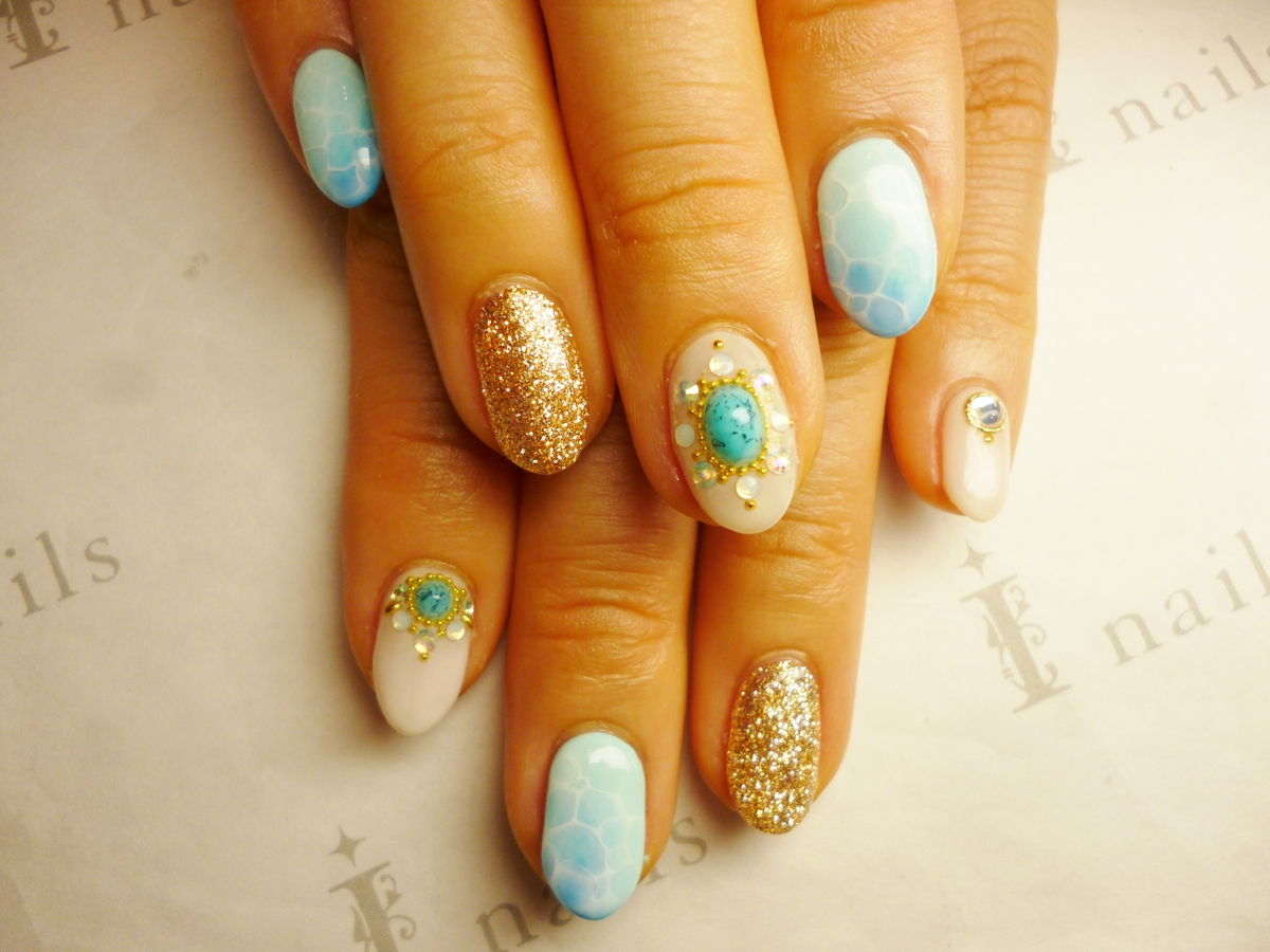 夏全開涼しげです♪ Nail Pickup|~・~・~・~・~・~・~・~・~・~・~・~・ 所要時間:2時間 【オフあり】 Nailist:黒田