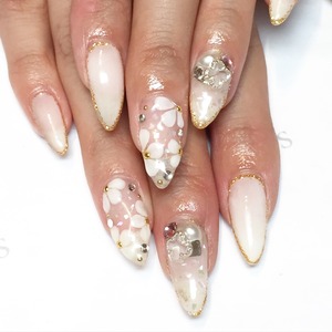 シースルー3Dフラワーネイル 2015/03/09 春ネイルって可愛いですよね♪ クリアに白いお花の組み合わせは鉄板に可愛いです!! シェルを乗せると更に素敵です ~・~・~・~・~・~・~・~・~・~・~・~・ 所要時間:2時間 【オフあり】 値段::ワンカラー 5130円 ラメ囲み108円~ 3D花216円~ シェル108円~ でかパール216円 Vカット 157円 Nailist:佐々木