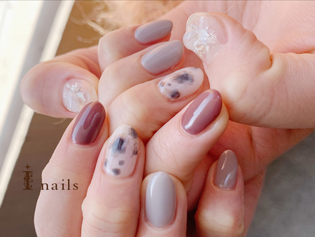 くすみカラー×アニマル柄ネイル 【担当】吉田 COLOR ブラウン ベージュ グレー ARTTYPE ワンカラー アニマル TASTE シンプル クール モード SCENE オフィス キャンパス アニマル柄もくすみ系カラーで攻めすぎないのがオススメ! ¥7500