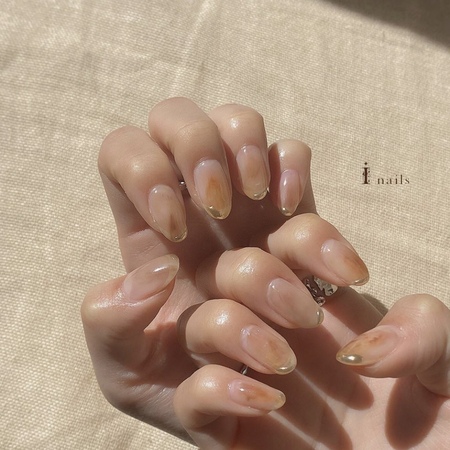 シンプルcollection 透け感ネイル 【担当】kana.m COLOR ブラウン ARTTYPE 3D マーブル TASTE シンプル SCENE オフィス ちゅるん、塗かけ、ミラー、ぽこぽこ ¥7800