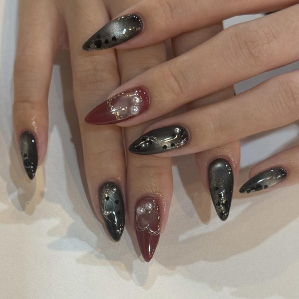 黒と赤のかっこいい色味にハートのデザイン入れることで甘辛デザインになりました〜