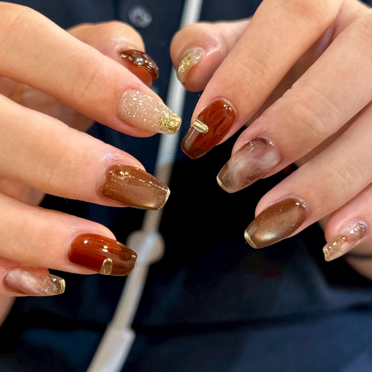 - ブラウン ゴールド ベージュ グレージュ シアー くすみ系