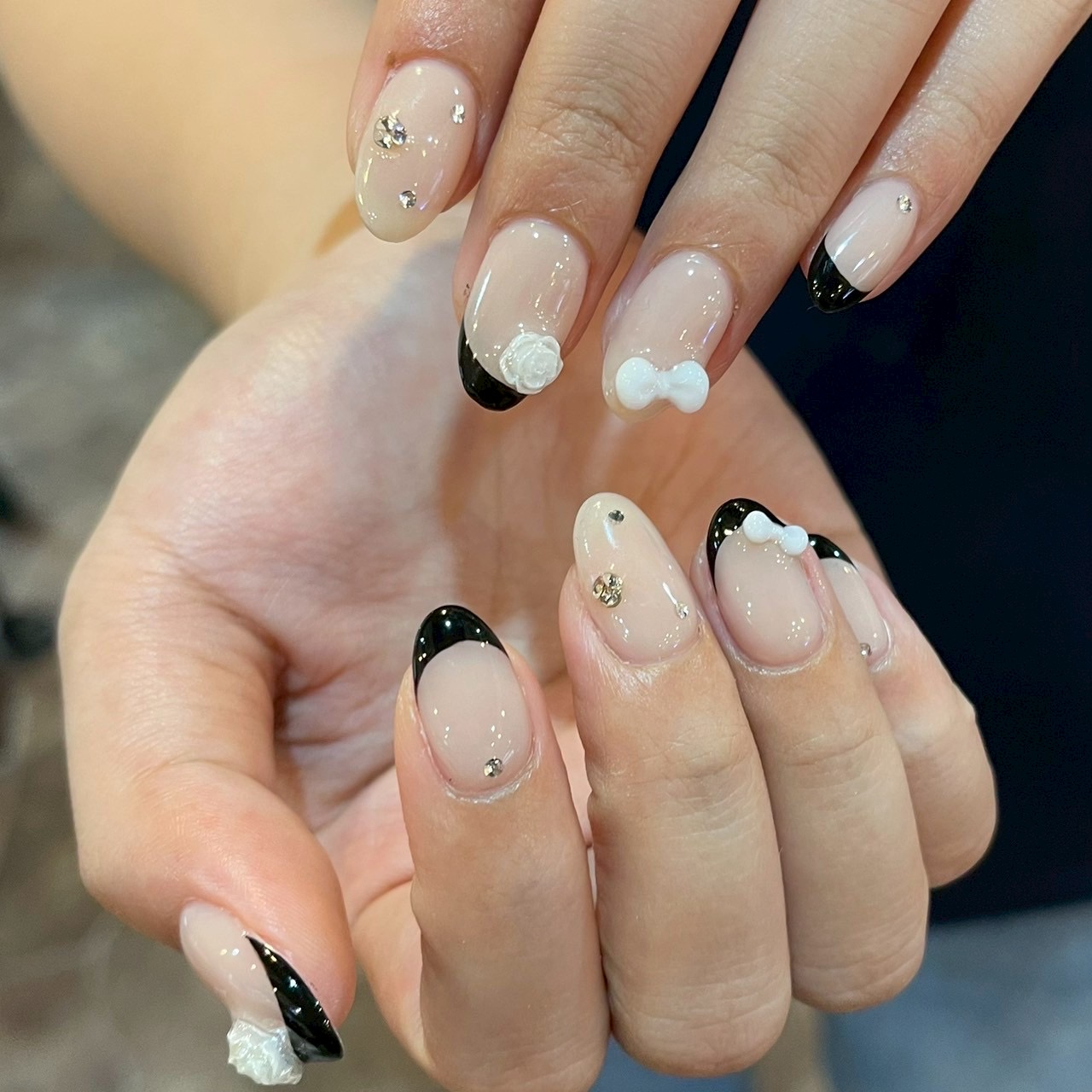 - ワンカラー フレンチ 3D ストーン ビジュー パーツ