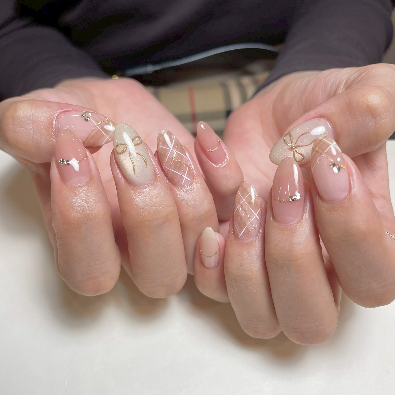 リボン×チェックネイル¥10200