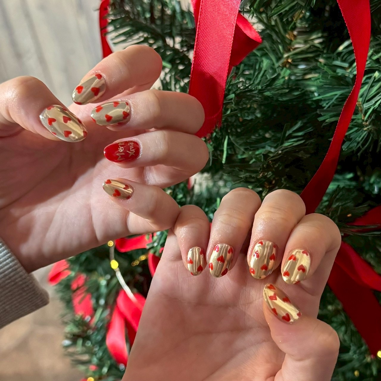 ハートネイル【miki】 COLOR レッド ゴールド メタリック ARTTYPE ワンカラー ミラー TASTE エレガント ゴージャス ポップ デコレーション ラブリー 大人可愛い 上品 おしゃれ SCENE 誕生日 パーティー キャンパス デート お正月 成人式 バレンタイン 卒業式 祭り クリスマス 冬ネイル オールシーズン デイリー PRICE ¥9001~¥11000 クリスマスシーズンにぴったり◎ゴールドミラー×ハートデザイン ¥9200